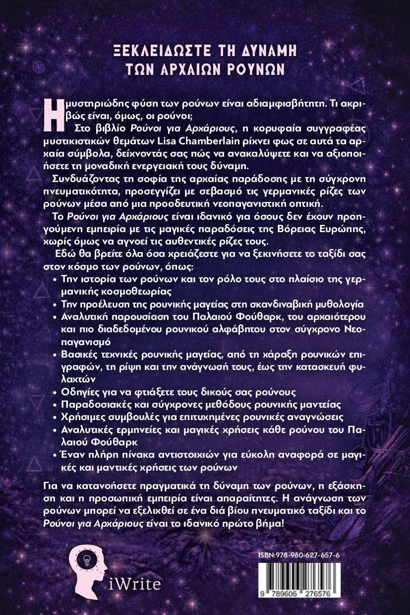 Στο βιβλίο Ρούνοι για Αρχάριους, η κορυφαία συγγραφέας μυστικιστικών θεμάτων Lisa Chamberlain ρίχνει φως σε αυτά τα αρχαία σύμβολα, δείχνοντάς σας πώς να ανακαλύψετε και να αξιοποιήσετε τη μοναδική ενεργειακή τους δύναμη.